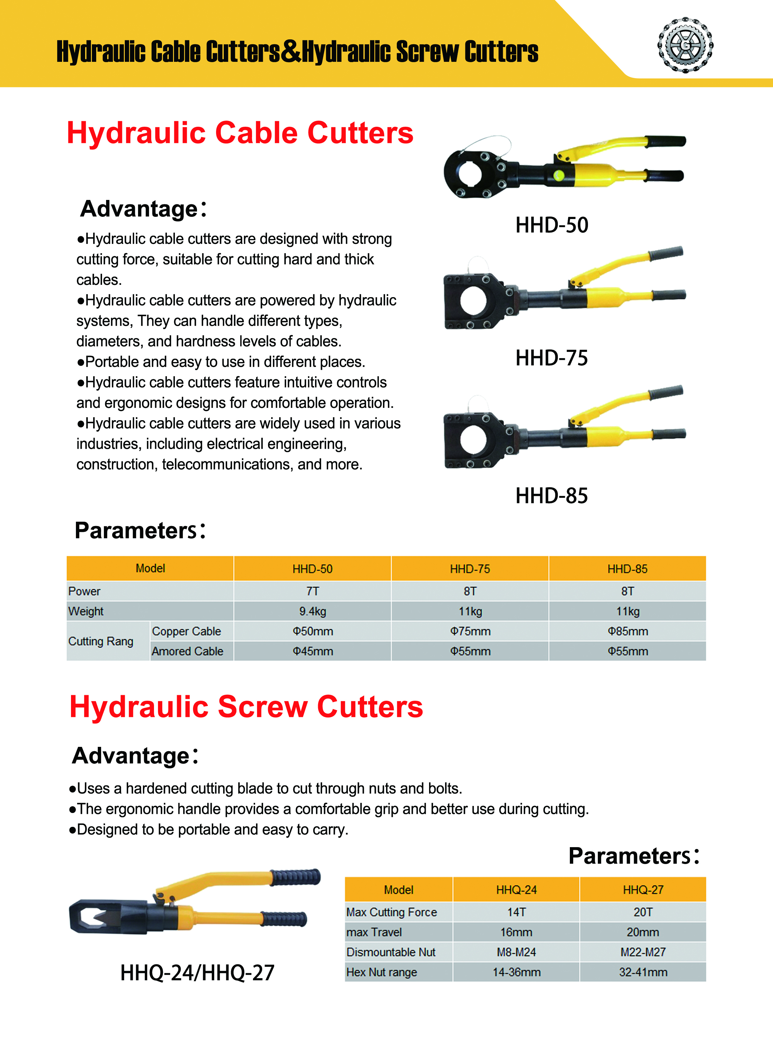 ● برش کابل هیدرولیک با نیروی برش قوی طراحی شده است که برای برش کابل های سخت و ضخیم مناسب است.